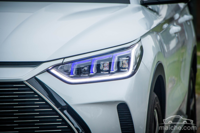 全LED灯组进行了升级,雾灯区域采用犀利的锋刃状造型,转向灯也被集成在大灯中,并且在白天时大灯内部还会有一层蓝色灯光点缀,显然这也是为了更加突出其新能源车的身份,细节可以说是非常的到位。