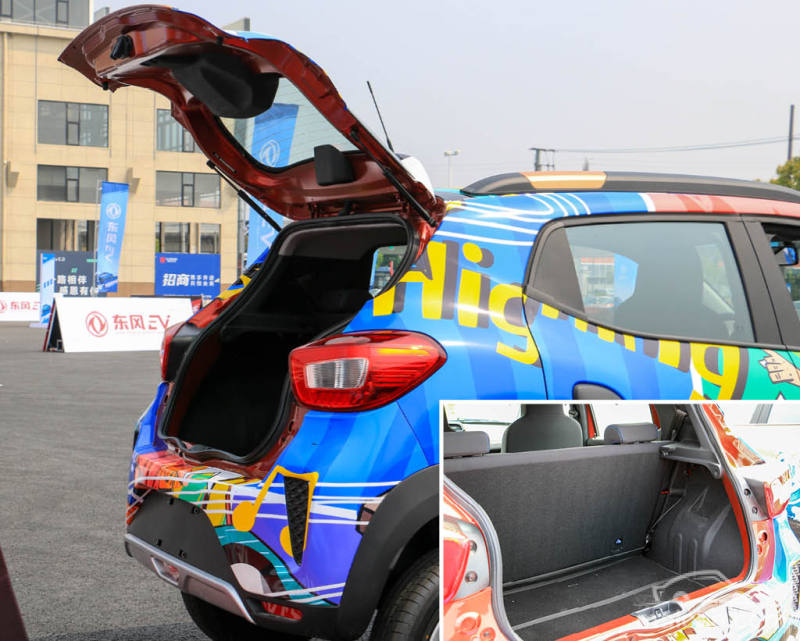 此次趣驾会上,新车采用了多彩的贴纸设计,视觉效果非常夺目。而东风EX1在常规涂装上将提供典雅白、晨风蓝、宝石红三种涂装可选。此外,车顶行李架的银色搭配,也让这款小车看上去更有特色。