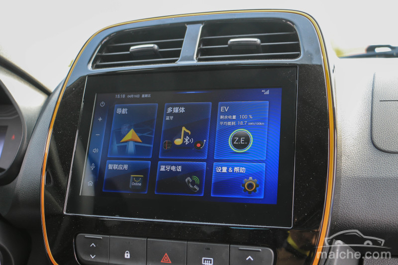 中控台上的嵌入式多媒体液晶屏显得格外夺目,辅以亮色装饰条的加入,看上去更符合年轻化的特征。8英寸的多媒体液晶屏具备GPS导航,并内置了蓝牙/电话功能,触控式的操作方式也更具吸引力。属于“麻雀虽小,五脏俱全”的类型。而从显示界面来看,其简单方块状格局,也属于清晰易懂的设计范畴,属于上手即会操作的一类。