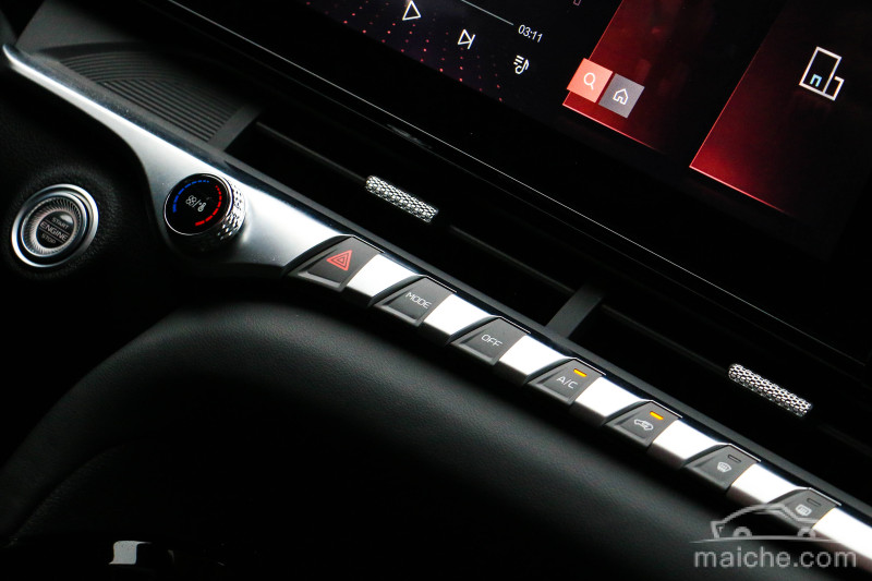 在智能化和科技化的触控/语音操作方式外,物理按键依然被保留,并被赋予了最为常用的一些功能的操作,使驾乘者在紧急情况下的指令更为快捷的传达。设计手法上,圆形旋钮的空调温度调节和悬浮式的功能按键布局,也融入了“近大远小”的物理原理,设计比例层面更有一份独特美感。