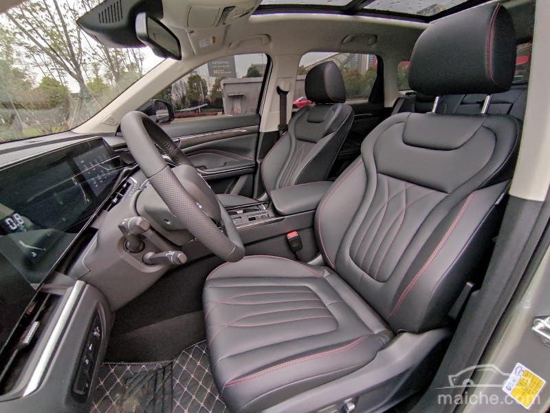 黑色皮质座椅+红色缝线的设计,无疑是运动化的最好代言。实拍试驾车型的座椅宽大舒适,属于看上去运动,坐起来舒服的调性。官方信息显示,生产过程中对对座椅的焊接进行优化处理,大幅降低座椅重量,既实现轻量化,又进一步提升档次感。同时,主驾驶位电动调节和前排双座椅加热功能也将在尊享型车型上露面,亦是档次感的体现。