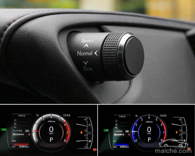 新车提供多种驾驶模式,而雷克萨斯ES 300h则将调节旋钮设定在了仪表台顶端右侧,旋钮拨杆的设计也是与众不同的地方。清晰的阻尼感以及颗粒面的设计,让细节之处用心也得以彰显。此外,不同的驾驶模式下,液晶仪表盘的显示界面也会同步呈现出各自的风格。