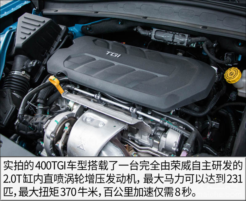 动力 新车搭载1.5T和2.0T两款涡轮增压发动机以及1.5T的插电混合动力系统。实拍2.0T车型搭载了完全由荣威自主研发的缸内直喷涡轮增压发动机,最大马力为231匹,峰值扭矩为370牛米,与之匹配的则是6速湿式双离合变速箱以及四驱系统,百公里加速仅需8秒。