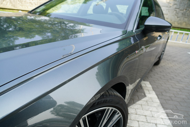 试驾车使用了官方称之为“天云灰”的车漆,相对于以往占据A6L销量绝大部分的黑色车漆来说,给人的感觉很特别。 这其实也是奥迪对品牌形象进行调整的一种手段,之前还只是在小众定位的运动车型上使用跳跃的配色方案来改变奥迪产品以往给人留下的沉闷印象,如今对于战略车型也开始有所涉及。天云灰虽然看上去还是偏低调,不过它是全新A6L众多配色中唯一的具有珠光效果的漆面。