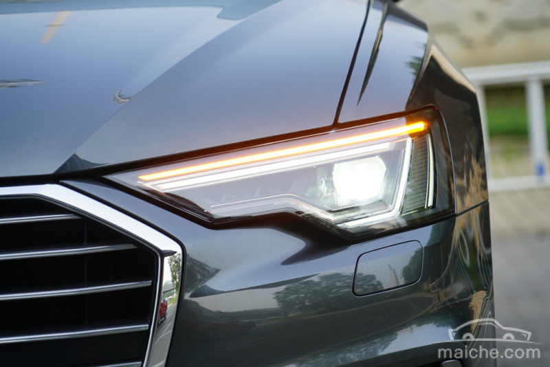 入夜之后,想要简单直接的辨认奥迪车型就只能依靠灯组了。全新A6L可选装矩阵式LED光源,照明性能是不用怀疑的。试驾车没有选装矩阵大灯,但标配大灯的光照性能足够可靠,内部光源也独具特色。日行灯这块奥迪又玩出了新花样,多条水平线的造型在点亮之后能够与竞品产生明显的区别。