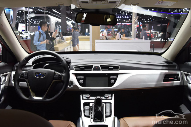 这款同样定位于紧凑级的SUV在内饰设计上遵循了简约时尚的风格。三辐式方向盘并无太大新意,深浅搭配的中控台上融入了不少软性皮质材料,档次感上也有一定提升。同时,该车大面积的镀铬面板虽然立体感强烈,但却显得有些廉价。不过,好在变速器挡杆区域功能按键在告诉驾驶者,吉利博越有着丰富驾驶辅助和安全系统。