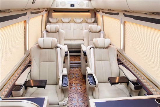 丰田考斯特改装商务车车内饰的百褶窗帘或者是布艺窗帘丰田考斯特商务车12座,既能够带给我们舒适之感也让车内的设计显示的更加独特。华通丰业丰田考斯特改装商务车在车内的地毯的选择上也增加了许多方案,游艇木地毯的整体舒适感,通道地毯的尊贵和舒适感。