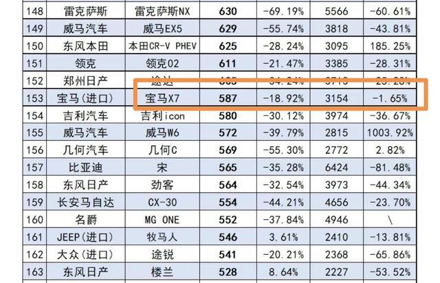 旗舰X7居然根本不受影响,1-4月在华总销量达到3154辆,同比仅仅微跌1.65%,对于汽车销售而言,这样的微跌和4月疫情和芯片短缺极大的困难面前根本不算啥,