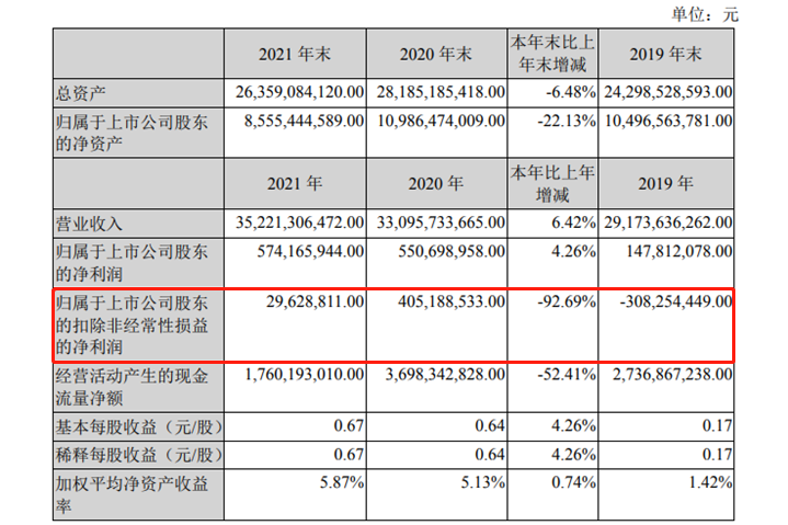 不仅今年,实际从去年开始,江铃旗下商用车销量就有下滑的迹象,根据3月份江铃汽车发布的2021年年报显示,去年实现营业收入352.21亿元,同比上升6.42%;实现归属于上市公司股东的净利润5.74亿元,同比小幅增长4.26%,但扣除非经常性损益后的净利润为2963万元,同比下降92.69%。