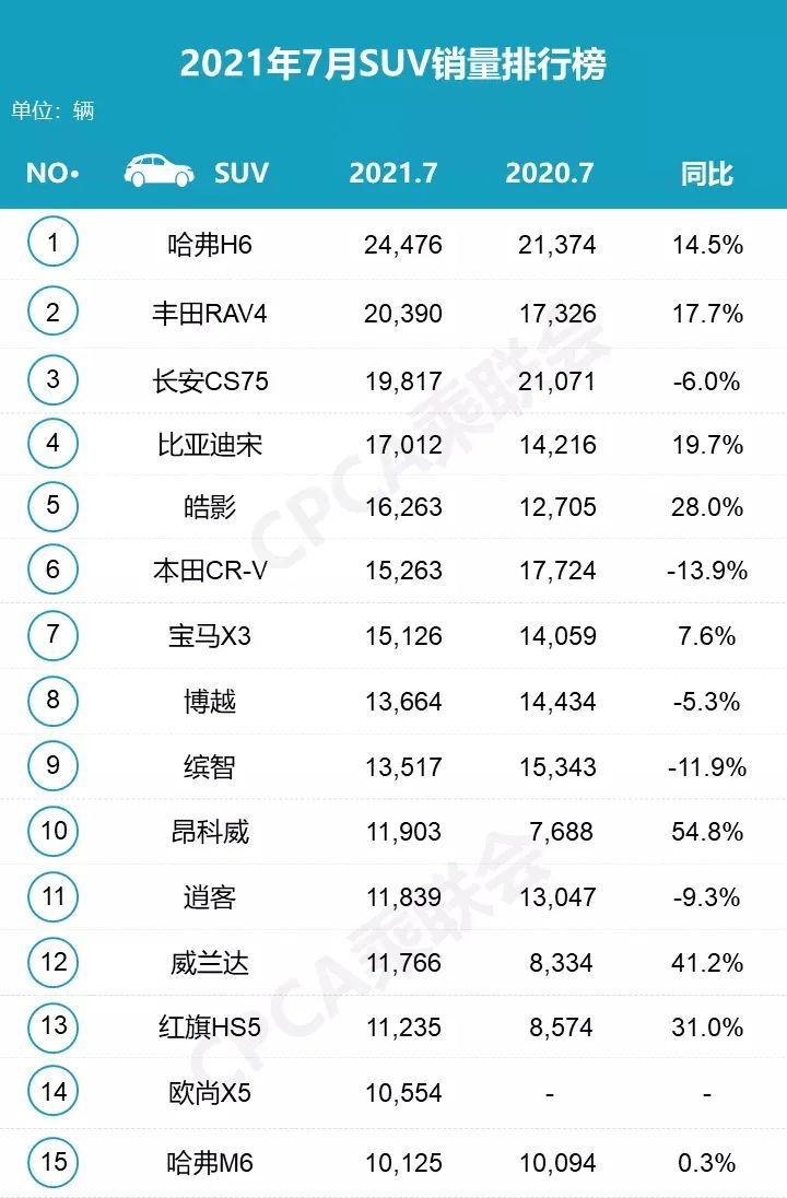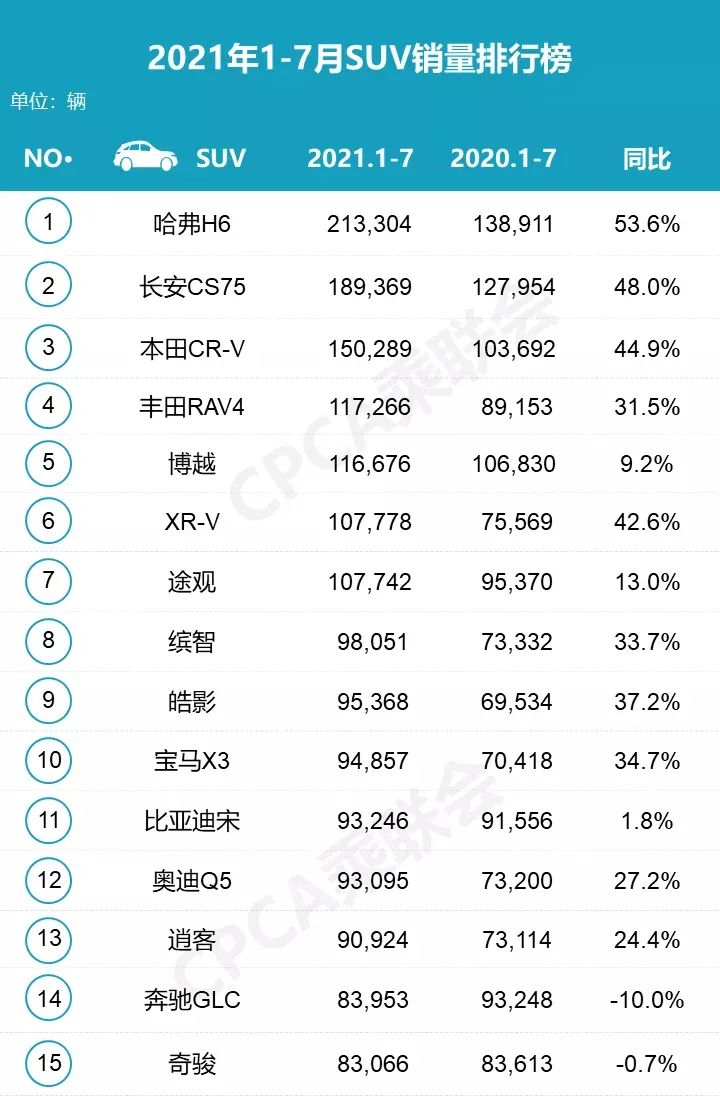 日前我们从乘联会公布的数据了解到7月份国内SUV销量前15名,以及今年1~7月份SUV总销量的前15名。哈弗H6依旧是第一名,本田XR-V暴跌,丰田RAV4破两万辆,长安欧尚X5和红旗HS5入围前15名。下面我们就来具体看一看每个车型销量的变化以及变化的原因。