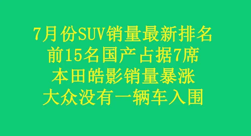 日前我们从乘联会公布的数据了解到7月份国内SUV销量前15名,以及今年1~7月份SUV总销量的前15名。依旧是第一名,本田XR-V暴跌,破两万辆,长安欧尚X5和红旗HS5入围前15名。下面我们就来具体看一看每个车型销量的变化以及变化的原因。