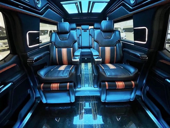 福特勇猛者2021新款配置,福特猛禽改装七座商务价格。福特勇猛者全车隔音、隔热、降噪处理,采用“2+2+3”经典七座布局,二排配备了飞机头等舱级的航空电动按摩椅,控制模块设置在车侧壁两边,用以调节座椅的:通风加热、气动按摩、腿托升降、前后移动等多项功能;三排可一键放平形成一张宽大的沙发床,供旅途疲累的宾客躺卧休眠;电动全景天窗带来豁达通明的极佳视野。