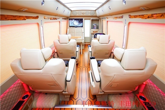 如果这些仍然不够打动你,那么把创意和温柔全部给你够不够:丰田考斯特定制版内含奢华版中所有高级设备,并且在此基础上考虑到大众的几乎所有需求。丰田考斯特改装商务车座椅采用加装真皮材质丰田v6,让您更加称心如意。车内陈设各类工作生活所需设备:推开车门,精致地毯迎接你;走入车内,办公桌椅等着你。在我的眼里,不管是豪华的窗帘还是整齐的地毯,亦或者是我们专门配备的车载冰箱,这一切固然美好,但是都不及丰田考斯特改装在内饰灯光的设计,灯管是最能烘托车内风味的设置,蓝色灯管给人淡雅的感觉,粉色的灯光给人以梦幻,橙色的灯光给人以轻松,丰田考斯特改装商务车在内饰增加彩色的灯光设置,给我们的旅途创造了轻松愉悦的环境。丰田柯斯达又可以称为丰田考斯特。