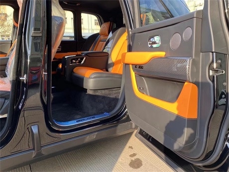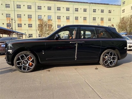 劳斯莱斯库里南 BB版 钻石黑/柑橘色状态 :展位现车价格:含税出配置:四座,星空顶,前后排座椅通风劳斯莱斯库里南,双腰线。