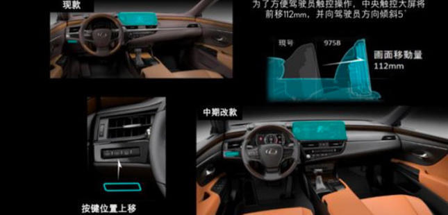 而从图片上看,新车的中控屏尺寸貌似更大了,没错!新车还将配备12.3英寸中控触控屏,以提升整台车的科技感,并且雷克萨斯还将中央触控屏向前移动了112mm,并向驾驶员方向倾斜5°,极大地提升了触控操作的便利性,并且新车还将左手的灯光按键区域做了上移,这处处体现了这家车企的人文关怀。