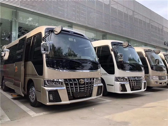 丰田考斯特、9座、10座、11座、12座、13座、15座、16座、17座、19座、20座、23座华通丰业现车销售, 豪华内饰改装。考斯特整体造形美观,内部改装布局充分考虑与丰田考斯特整车的平衡,每位乘客能切身体会尊贵。