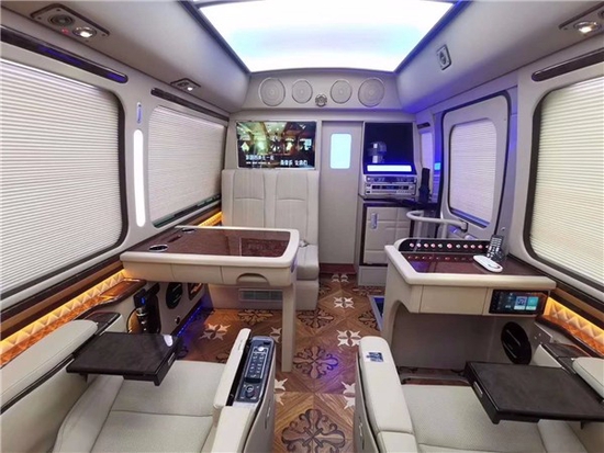 丰田考斯特改装商务车12座也可以设计成房车的形式,旅途中疲累的时候,一张舒适柔软的床会提升我们旅途的幸福感和愉悦感。华通丰业丰田考斯特改装商务车在内饰的设计上,舒适的座椅配备通风装置,必然可以带给我们更加舒适的旅行体验,在夏日的旅行也增加许多幸福的记忆。