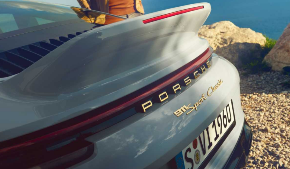 当然了,除了在造型上采用复古设计,911 Sport Classic也加入了一些在其他车型上没有见过的设计特征,例如采用碳纤维增强塑料(CFRP)制成的车顶和引擎盖,以及车尾上复古的金色字体,都让这台911 Sport Classic营造出极其浓郁的怀旧风格。