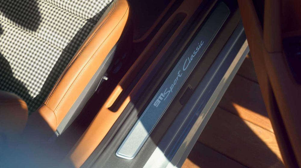 保时捷Exclusive Manufaktur定制部门在内饰搭配上的工艺可谓是有目共睹,在这台911 Sport Classic身上更是发挥到了极致。来自918 Spyder内饰中的半苯胺皮革,第一次出现在了911车型上。Pepita千鸟格纹理的座椅及门板,营造出了上世纪60年代末到70年代初的氛围。