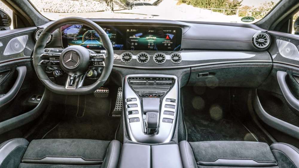 在最为重要的动力方面,新车搭载了一台顶级的4.0T V8双涡轮增压发动机,配最大功率204马力,最大扭矩320牛米的后置单电机,9AT变速箱及4Matic+四驱系统,最终达到的综合最大功率为惊人的843马力,最大扭矩1400牛米,百公里加速仅用2.9秒,最高时速可达316km每小时,毫无疑问达到了奔驰四门量产车的新高峰。