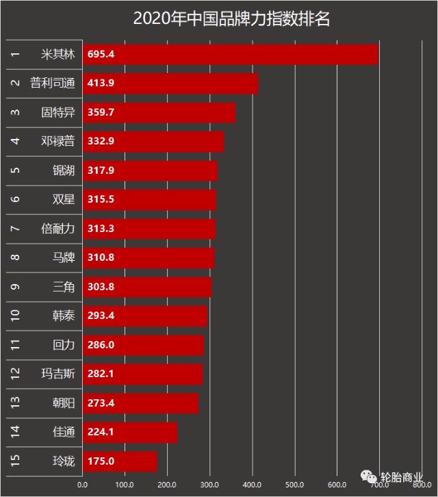 2020年4月22日,中国品牌评级权威机构Chnbrand发布2020年(第十届)中国品牌力指数(C-BPI)品牌排名和分析报告,汽车轮胎品牌力指数排名也已经有了结果。