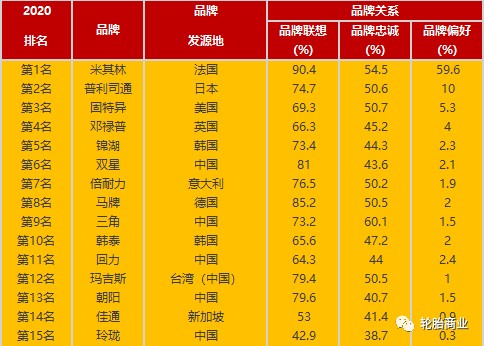 轮胎品牌力前五10年变化