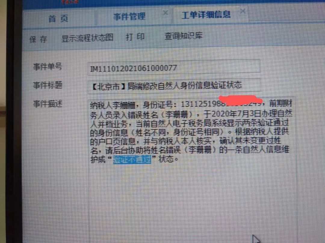 发现问题后,李女士向昌平区税务局第一税务所反映了问题,相关部门对李女士的名字进行了并档处理。