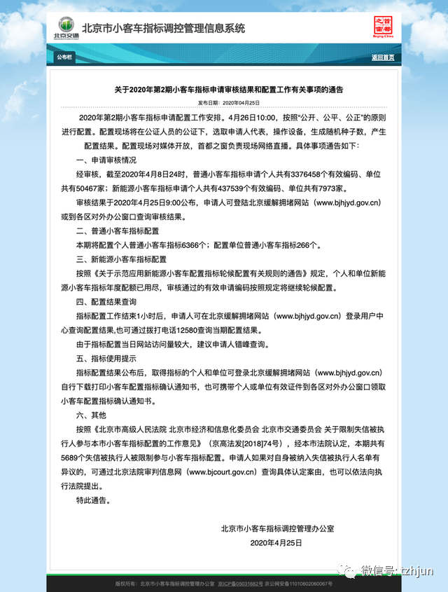 4月25日,北京市小客车指标调控管理办公室发布2020年第2期小客车指标申请审核结果。截至本期,新能源指标总申请人数约43.8万,按照现行规则测算,今年个人新能源指标54200个已在首期用尽,新申请者或将继续轮候9年。