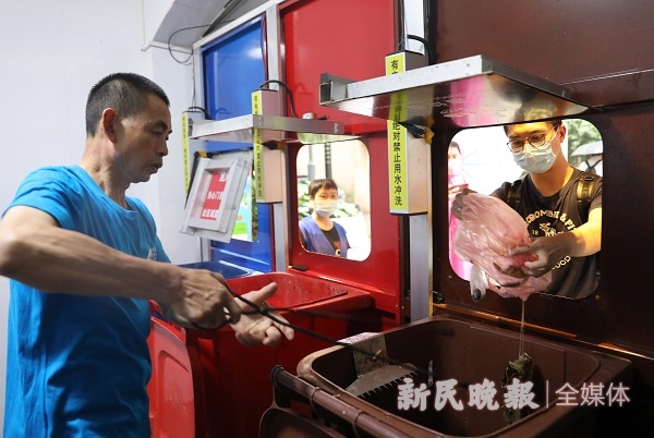 图说:徐家汇花园小区内的垃圾箱房采用了感应开门,方便居民扔垃圾新民晚报记着周馨摄(下同)