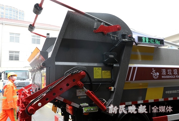 在上海日旭环境保洁服务有限公司,记者看到,原先3吨湿垃圾后压收运车辆已更新为新款湿垃圾车,不仅污水箱容量更大,箱体变成“船型”避免滴漏,车身加装的显示屏还能即时显示垃圾重量。